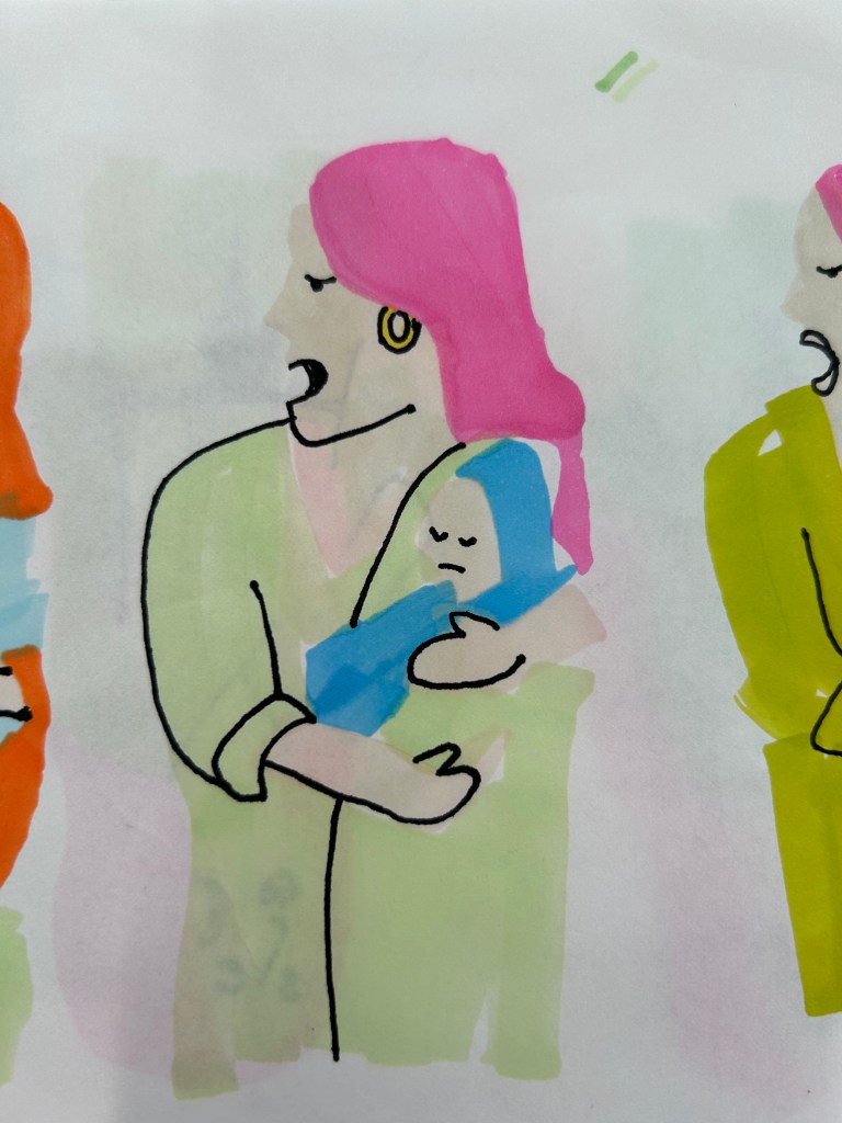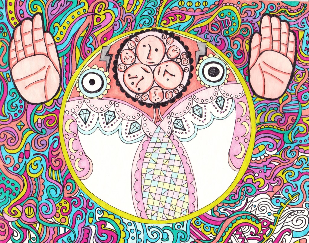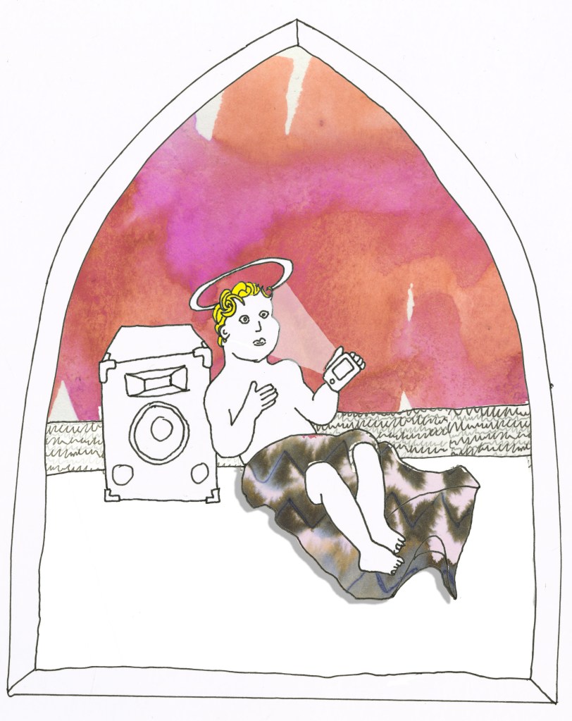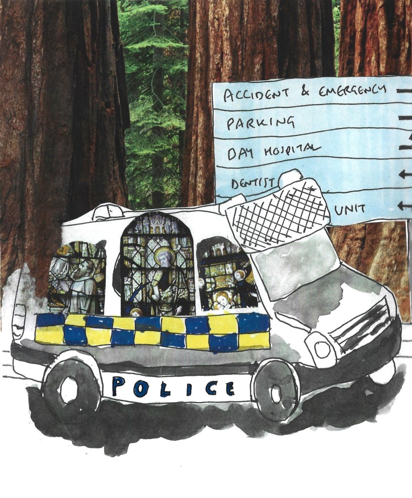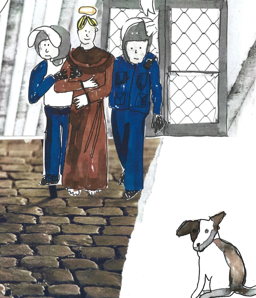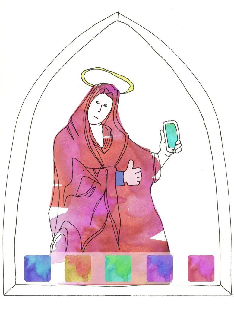 Includes: a rough draft of a graphic novel about St Francis of Assisi getting taken away by the authorities for talking to the animals (collage, ink, watercolour and marker); Mutations (pen and marker); Social Media Holy Family (ink and Adobe Photoshop); Mother (series in pen and marker); Squirrel (Wacom tablet and Adobe Photoshop); Backbend (Adobe Illustrator); Gerbera (Wacom tablet and Adobe Photoshop); Fly (Adobe Illustrator); and a series of quick sketchbook doodles in pen, pencil, watercolour and marker.
